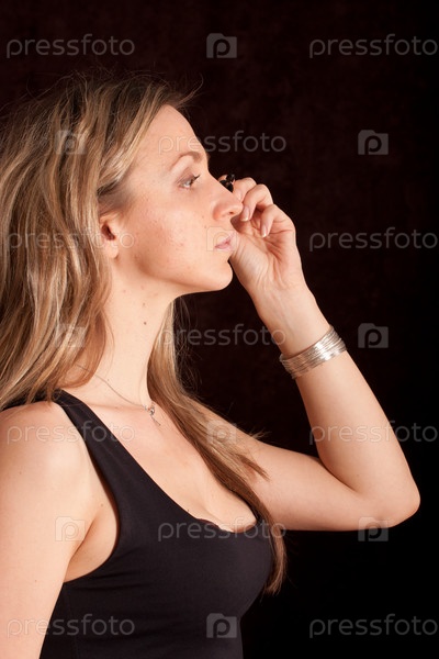 Девушка красит ресницы на черном фоне