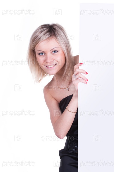 Портрет улыбающейся девушки с плакатом