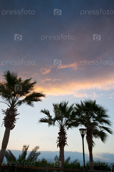 Пальмы на фоне закатного неба