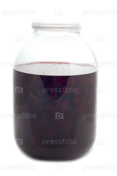Object on white - cherry jam glass jar Объект на белом вишневом стеклянном банке
