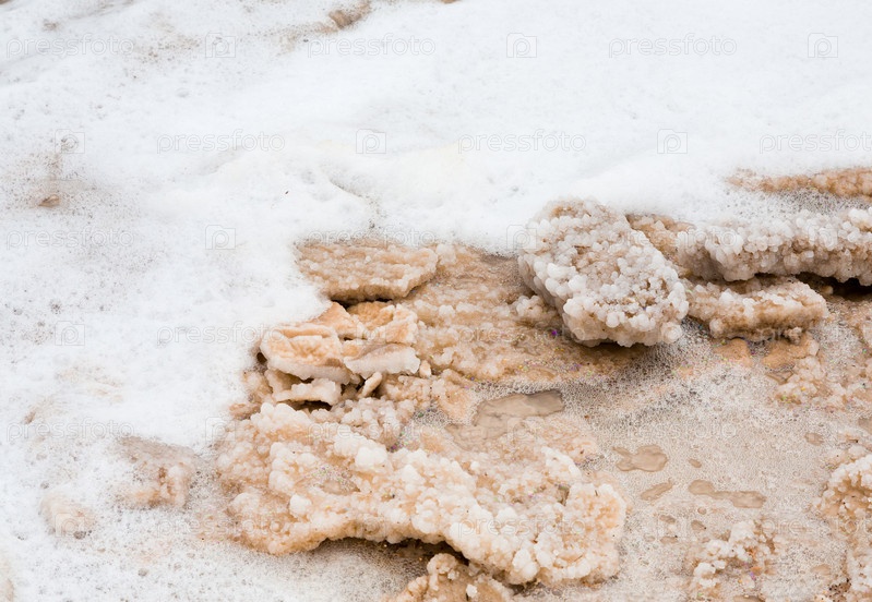 Кристаллическая соль на берегу Мертвого моря, Иордания