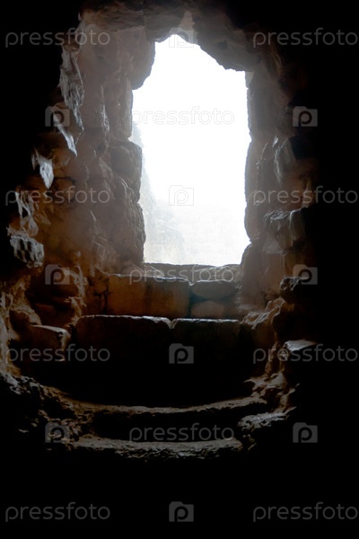Вход в замок Аджлун в туманный день, Иордания