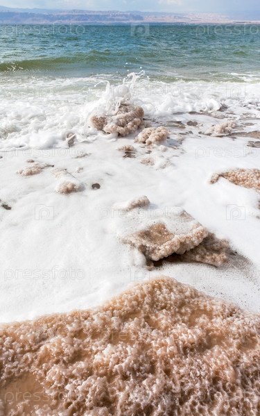 Кристаллическая соль на пляже Мертвого моря, Иордания