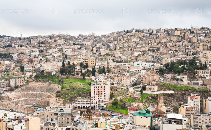 Вид на древнеримский театр в Аммане, Иордания