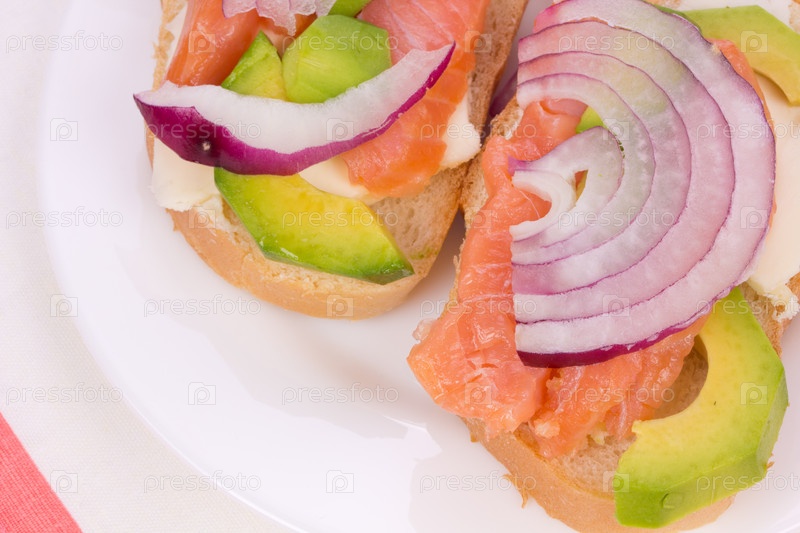 Бутерброды с лососем, авокадо и луком