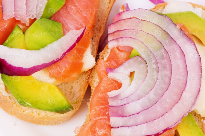 Бутерброды с лососем, авокадо и луком
