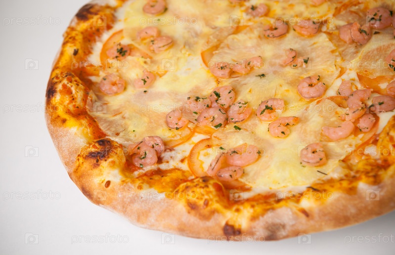 Пицца с креветками и ананасами