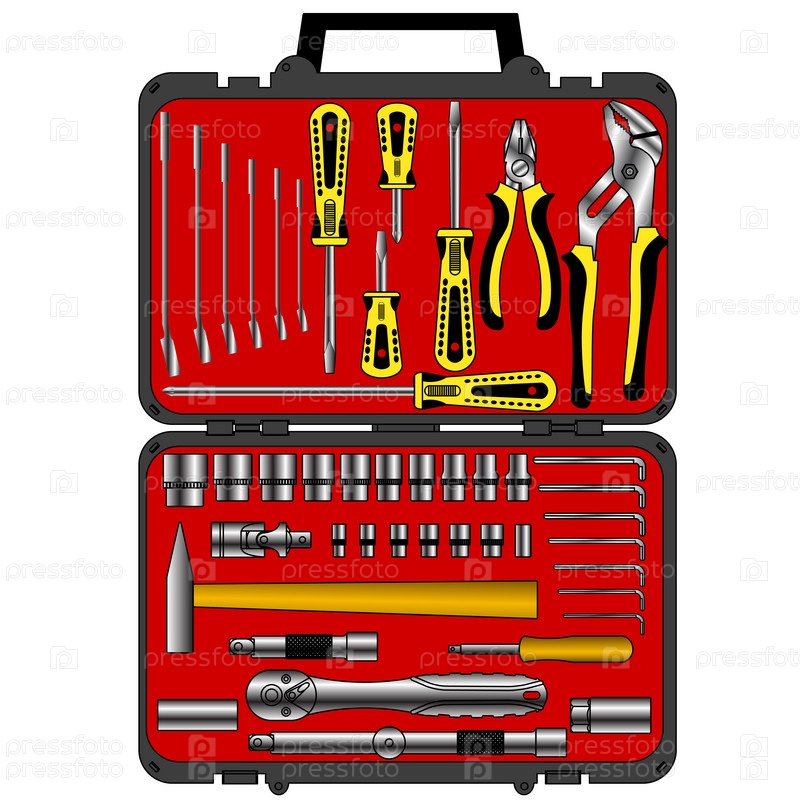 Набор различных инструментов в чемодане