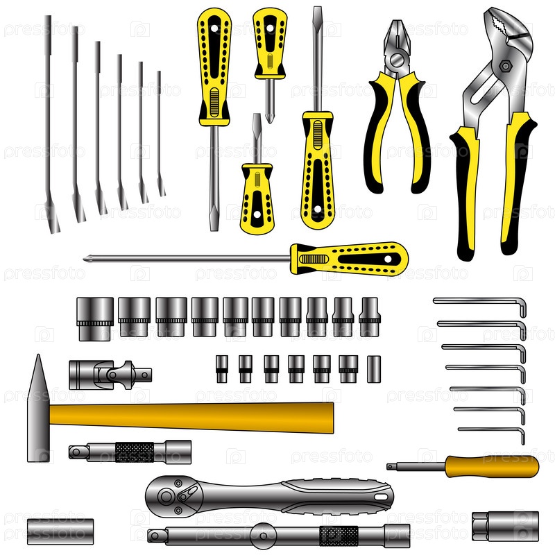 Набор различных инструментов на белом фоне