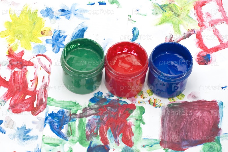 Объект на белом - краска и детский рисунок