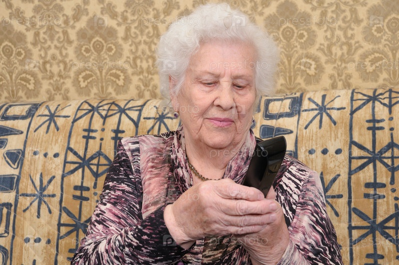 Пожилая женщина набирает номер на телефоне
