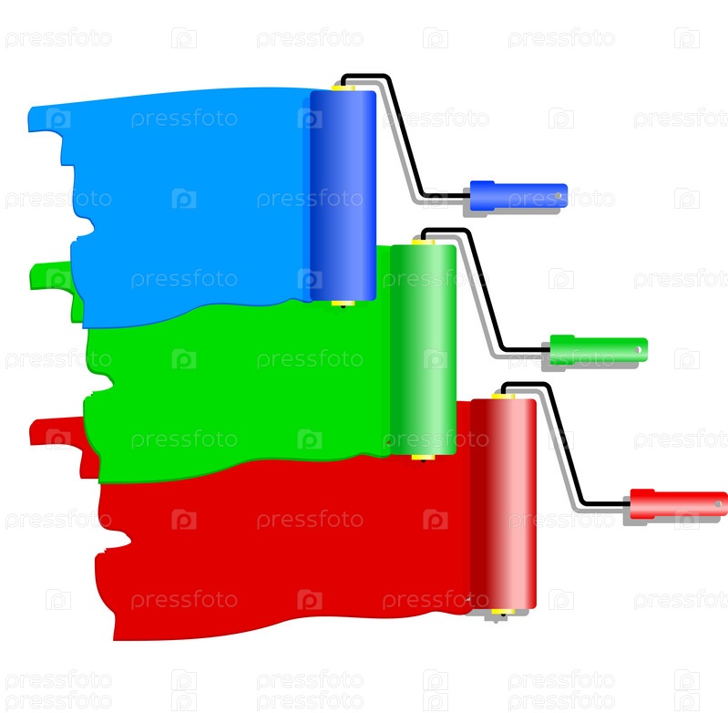Три малярных валика с разными красками