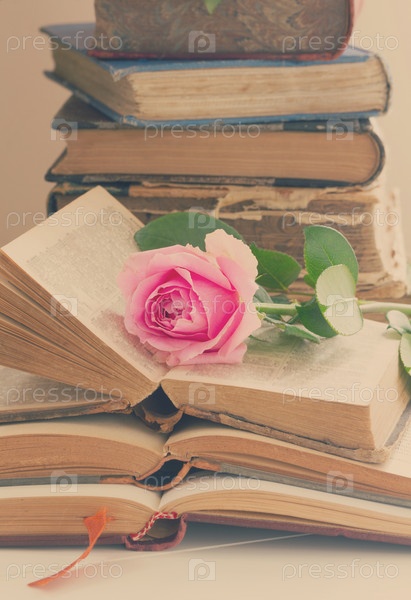 Старые книги и роза