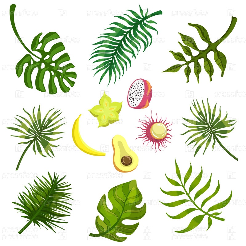 Тропический листья и плоды