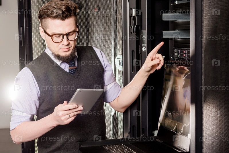 Молодой инженер в центре обработки данных