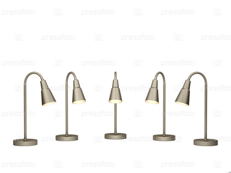 Пять настольных ламп на белом фоне