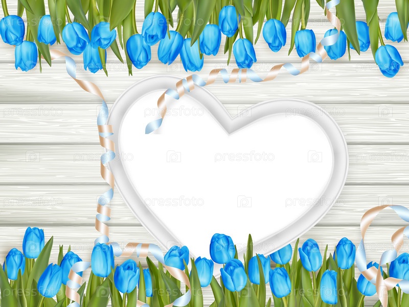 Рамка-сердце с голубыми тюльпанами