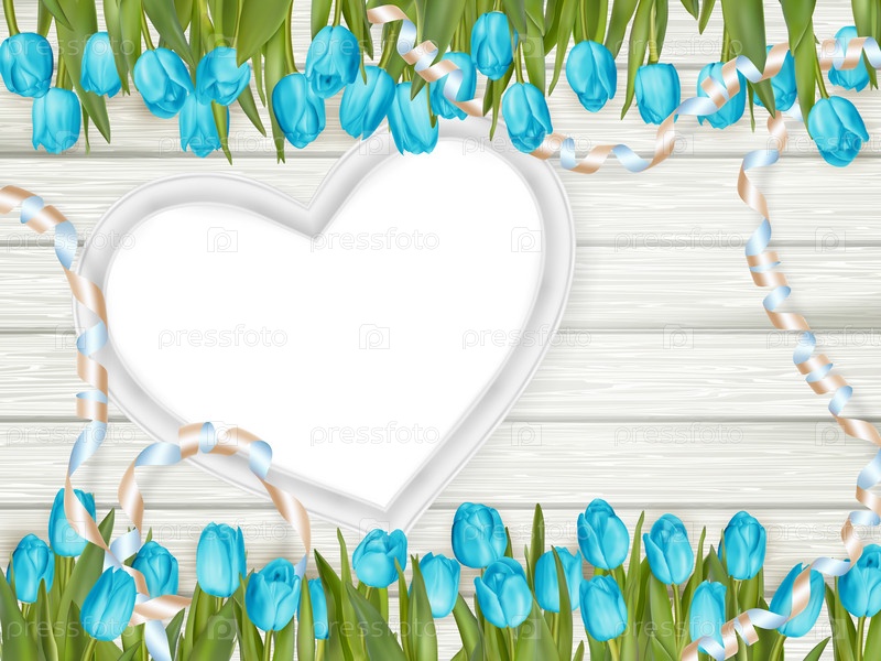 Рамка-сердце с голубыми тюльпанами