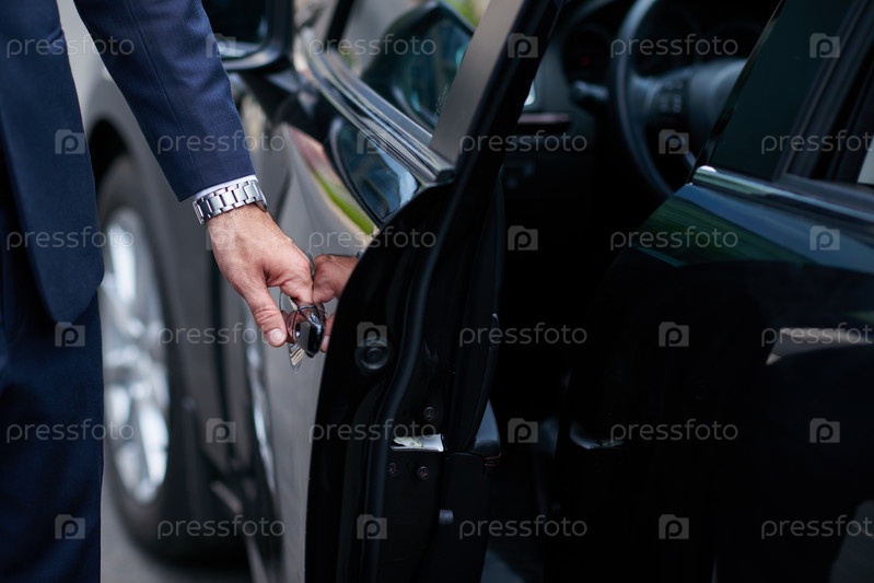 Бизнесмен открывает дверь автомобиля
