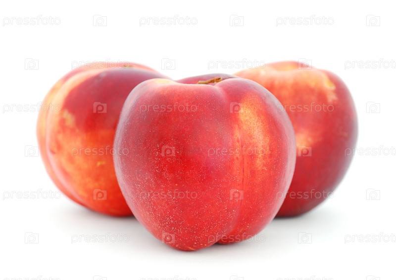 Три нектаринки на белом фоне