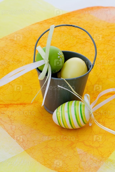 Пасхальные яйца в небольшом ведерке