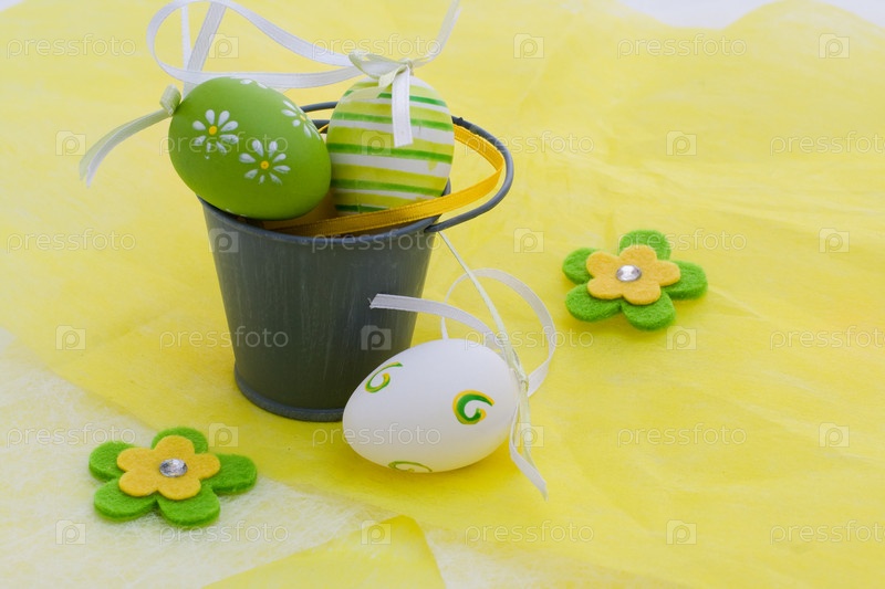 Пасхальные яйца в небольшом ведерке