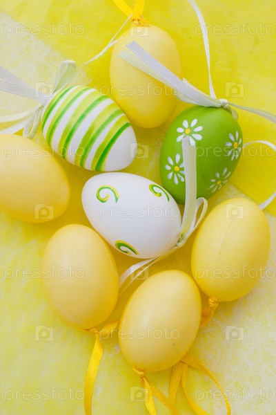 Пасхальные яйца на желтом фоне