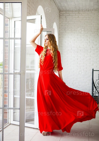 Красивая блондинка в красном