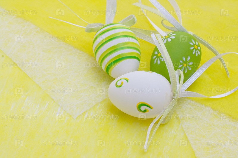 Красочные пасхальные яйца на желтом фоне