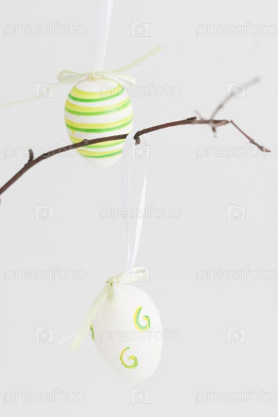 Пасхальное яйцо на ветке на белом фоне