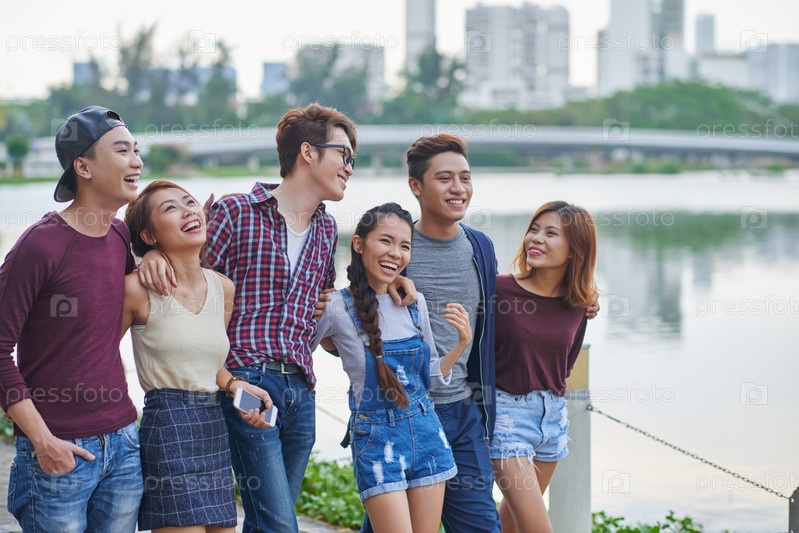 Счастливые друзья на прогулке