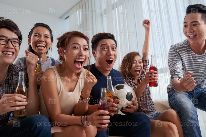 Друзья смотрят футбольную игру