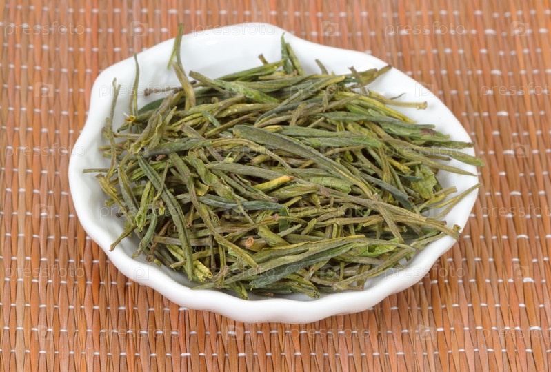 Китайский зеленый чай в тарелке
