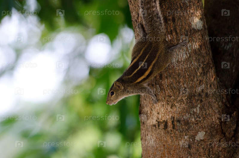 Любопытный бурундук на дереве