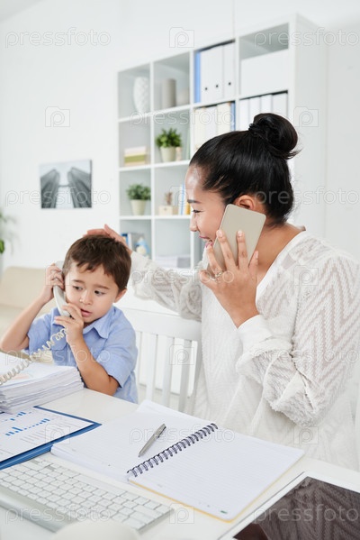 Мать с сыном в офисе