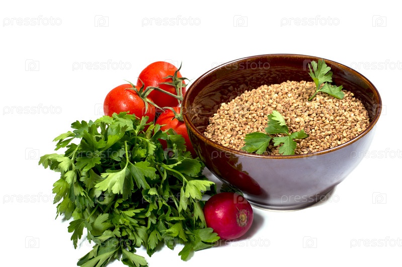 Гречневая каша и помидоры с петрушкой