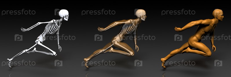 3D-концепция человека мужского тела и скелета