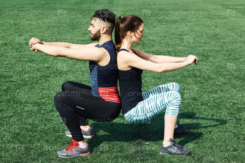 Пара занимается спортом на свежем воздухе