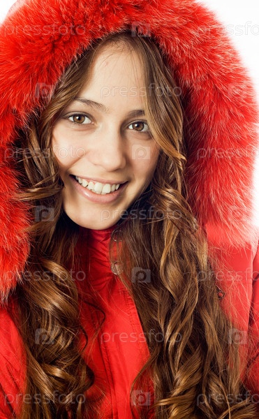 Красивая девушка в красной куртке