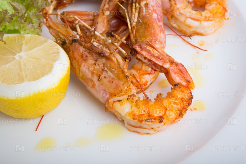 Свежие креветки на гриле