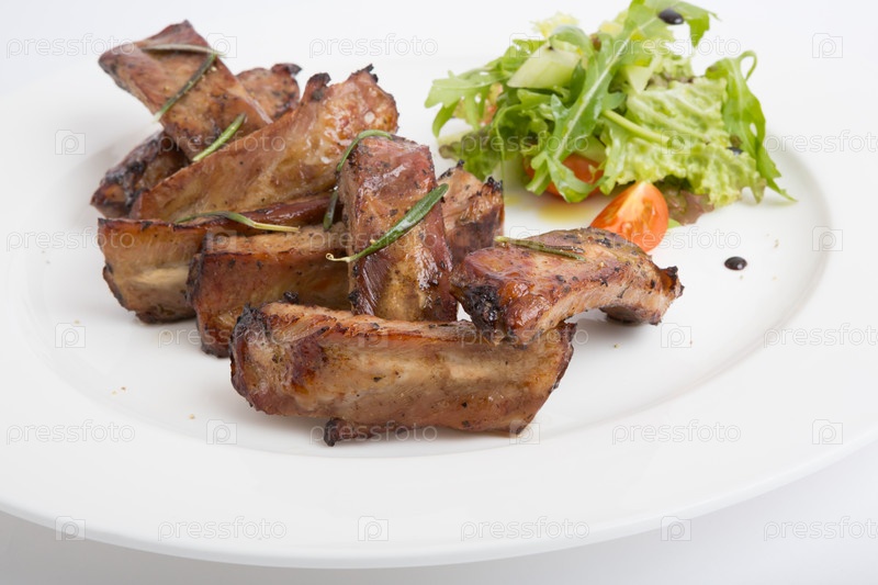 Жаренные ребра с салатом