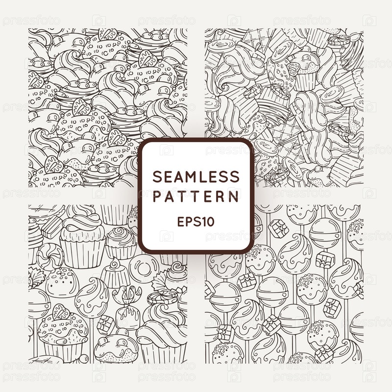 Бесшовный узор пончики, кексы, конфеты