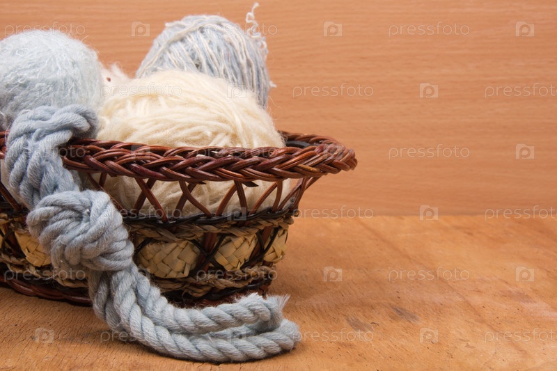 Клубки пряжи в корзинке