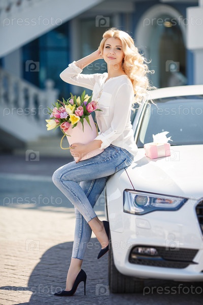 Красивая девушка с тюльпанами