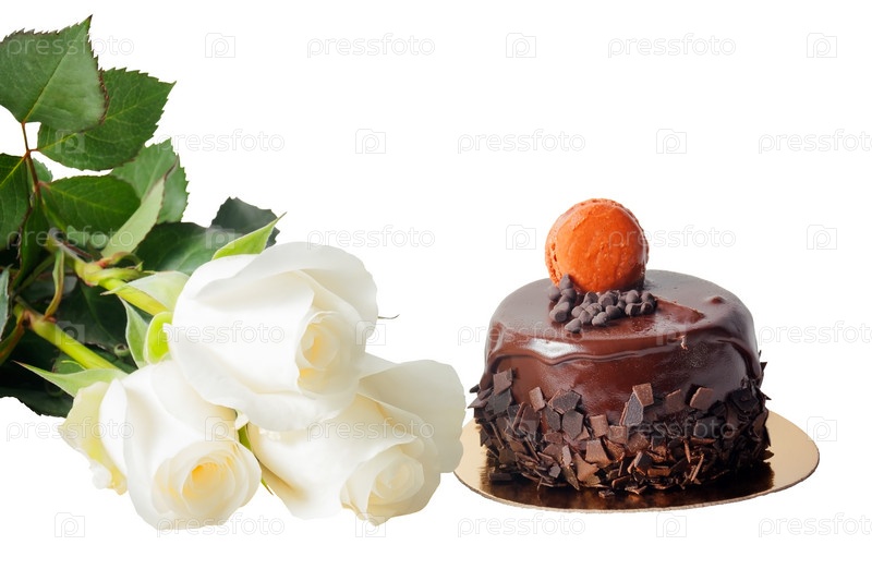 Шоколадный торт и розы