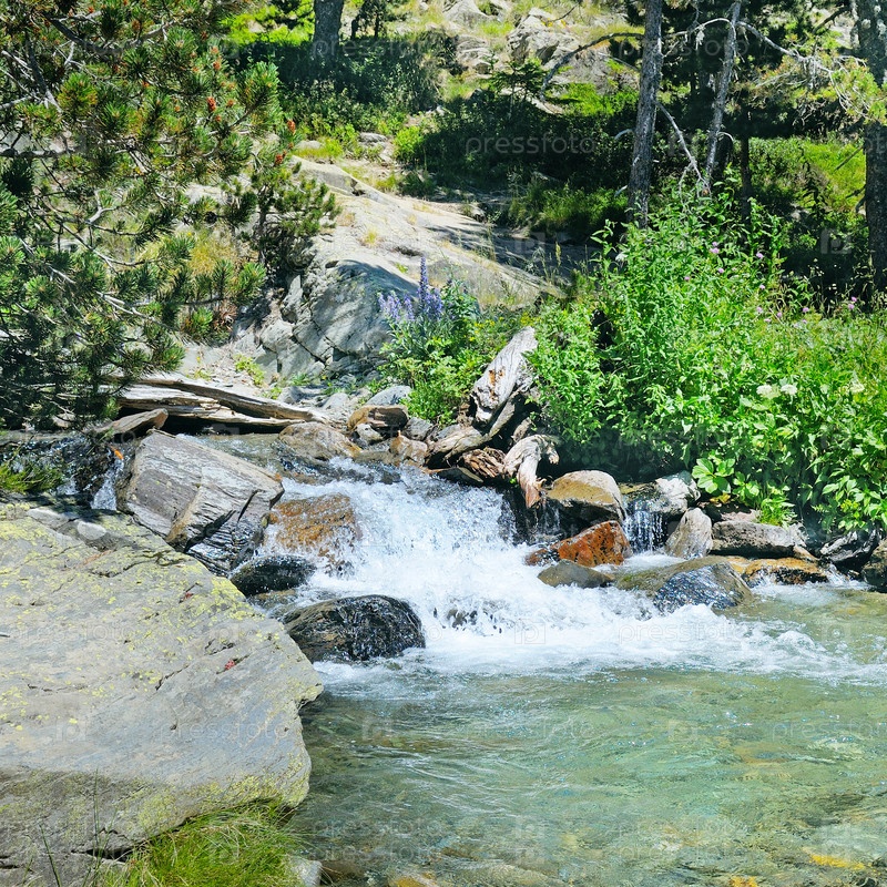 Горная река и хвойный лес