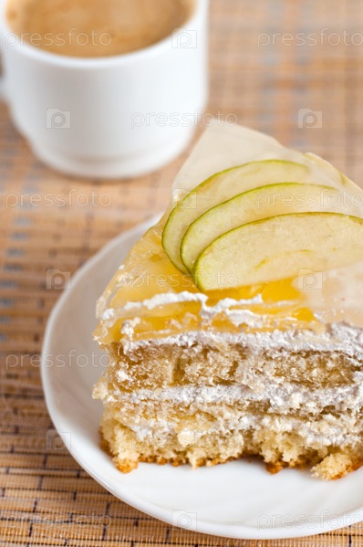 Фруктовый торт и кофе крупным планом