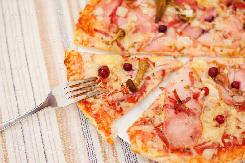 Вкусная пицца с грибами и ветчиной