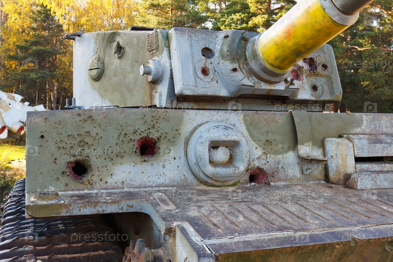 Сломанный танк Тигр VI PzKpfw в солнечный осенний день
