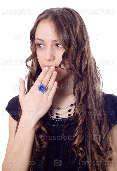 Удивленная девушка на белом фоне